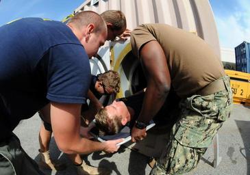 | Keywords: Training exercise 120920-N-ZQ794-046.jpg  en Sailors assigned to Mobile Diving and Salvage Unit 2 transport Navy Diver 3rd Class Phillip Hoefer into a transportable recompression chamber during a training exercise at Joint Expeditionary Base Little Creek - Fort Story Sept 20 MDSU is capable of planning coordinating directing and conducting anti-terrorism force protection missions disaster relief efforts battle damage repair underwater search operations harbor and waterway clearance emergent underwater repairs and salvage operations 2012-09-20 Petty Officer 3rd Class Kay Savarese https //www dvidshub net/image/669357 120920-N-ZQ794-046 2012-09-21 10 24 VIRGINIA BEACH VA US PD-USGov-Military-Navy United States Navy Mobile Diving and Salvage Unit Two Images from DoD uploaded by Fæ |