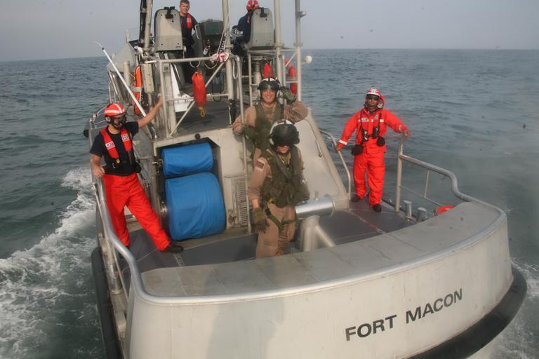 | Keywords: Training Pays Off, Rescue Saves Life, VMR-1 Uses Training in Real Emergency 100715-m-0647p-015.jpg en A crew of Coast Guardsmen with Fort Macon and two search and rescue crew members with Marine Transport Squadron 1 wait for another Marine to be lowered to the Coast Guard vessel during day boat hoist training two miles south off the coast of Fort Macon July 15 VMR-1 conducts training with the Coast Guard a few times a week during the day and night to ensure mission readiness 2010-07-15 Lance Cpl Cory D Polom https //www dvidshub net/image/301859 100715-m-0647p-015 2010-07-22 13 44 MARINE CORPS AIR STATION CHERRY POINT NC US PD-USGov Marine Corps Air Station Cherry Point Marine Transport Squadron 1 Images from DoD uploaded by Fæ |
