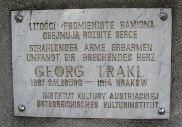 Keywords: Trakl szpital2.JPG pl Tablica pamiątkowa na szpitalu w którym zmarł Georg Trakl Kraków ul Wrocławska own Miezian 2009 Georg Trakl Plaques in Kraków Hospitals in Kraków