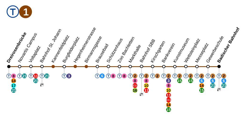 Keywords: Tramway Bâle 01-plan.svg fr Plan de la ligne de tramway numéro 1 du réseau de Bâle own work made with Inkscape from Image Métro Paris M14 2007 svg and Image Plan métro 3 Paris svg Sardon 2009-02-23 Basel tram line 1 Tram maps of Basel