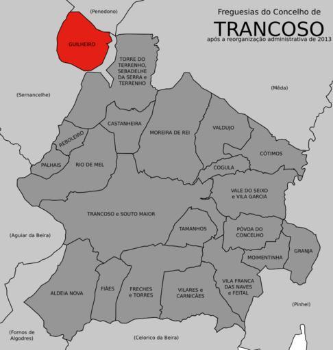 Keywords: Trancoso Guilheiro localização.svg pt Localização da Freguesia de Guilheiro exclave do concelho de Trancoso Portugal en Location of the Civil Parish of Guilheiro exclave of the municipality of Trancoso Portugal 2014-04-28 19 46 11 File Trancoso freguesias 2013 svg Gazilion cc-zero Uploaded with UploadWizard Trancoso Exclaves and enclaves in Portugal SVG maps of freguesias in Portugal |