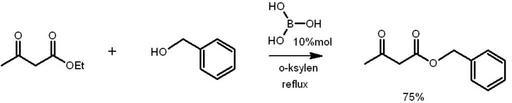 Keywords: Transesterification-boronic acid.png en Transesterification catalysed by boric acid pl transestryfikacja katalizowana kwasem borowym own praca wzorowana na Tetrahedron Letters Volume 49 Issue 1 1 January 2008 Pages 106-109 Filips Filip Stefaniak Cc-zero Organic reactions |