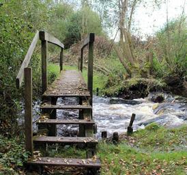 Keywords: transition web bridge boardwalk wooden bridge waters water bach river nature