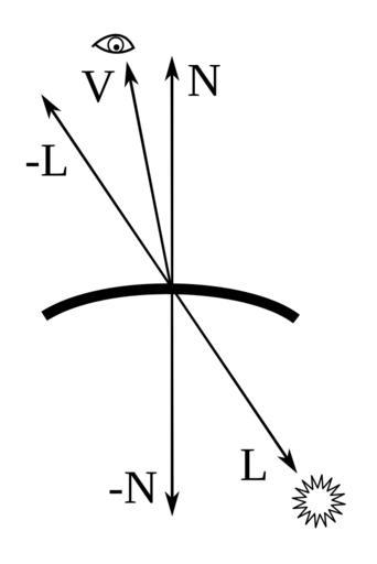 | Keywords: Translucency Vectors.svg en A diagram showing the vectors used in calculating translucent surface lighting similar to the Phong reflection model relative to a surface point N the surface normal L normalized vector in direction of light source -L negative vector L in the opposite direction V normalized vector in direction of viewer Image originally created by User Fuzzypeg in Inkscape and modified by User Martin Kraus; released to the public domain 2011-06-27 own Martin Kraus cc-zero Uploaded with UploadWizard Illustrations |
