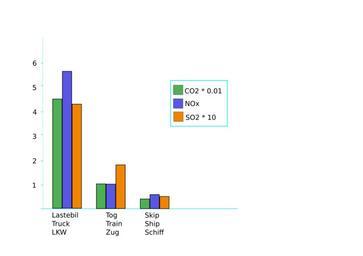 | Keywords: Transportation pollution.svg Bar chart showing CO2 0 01 NOX and SO2 10 pollution in grams per tonne-kilometer of cargo from truck transport train transport and ship transportation Data taken from OECD The Environmental Effects of Freight http //www oecd org/dataoecd/14/3/2386636 pdf Pollution Transport Sulfur dioxide Railway Statistics 2005-12-04 own assumed Bertil~commonswiki | ||||