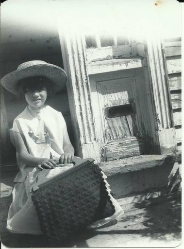 Keywords: traveling luggage voyage baggage child traveler kid journey black and white vintage hat girl