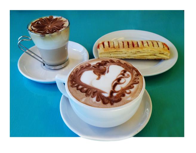 Keywords: treats for two coffee mocha bakery turnover coffee love coffee shop teal strawberry danish hot drink green white mug cup chocolate special treat heart food art breve hot chocolate latte food drink snack meal china restaurant food service