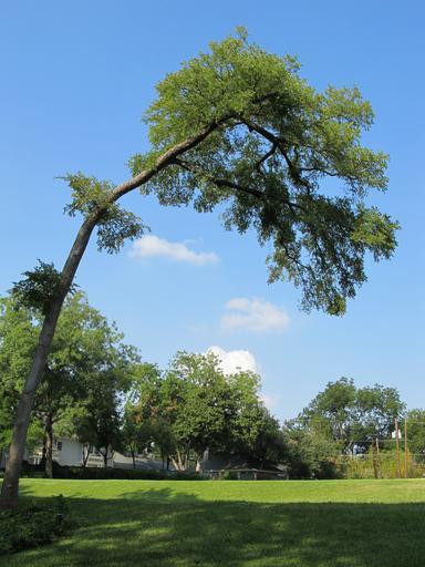 Keywords: tree bent tree bent branches landscape environment scenery sky blue clouds