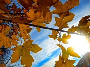 Keywords: tree branch autumn yellow sky blue