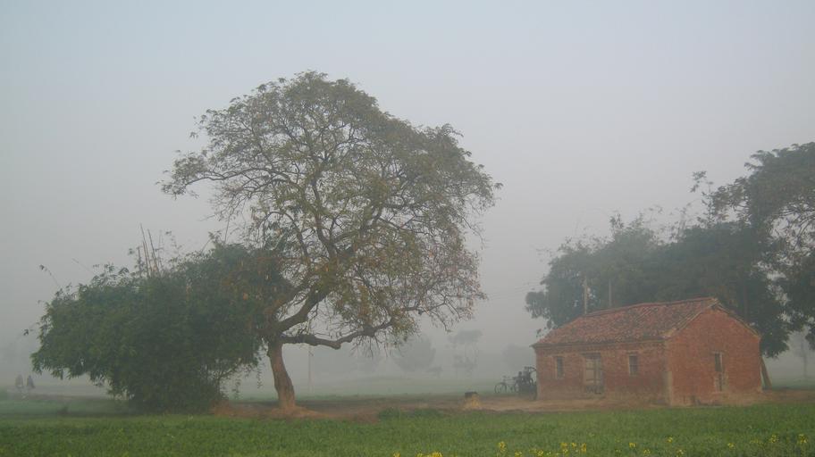 Keywords: tree fog mist village farmhouse nature morning farm landscape season house cold rural