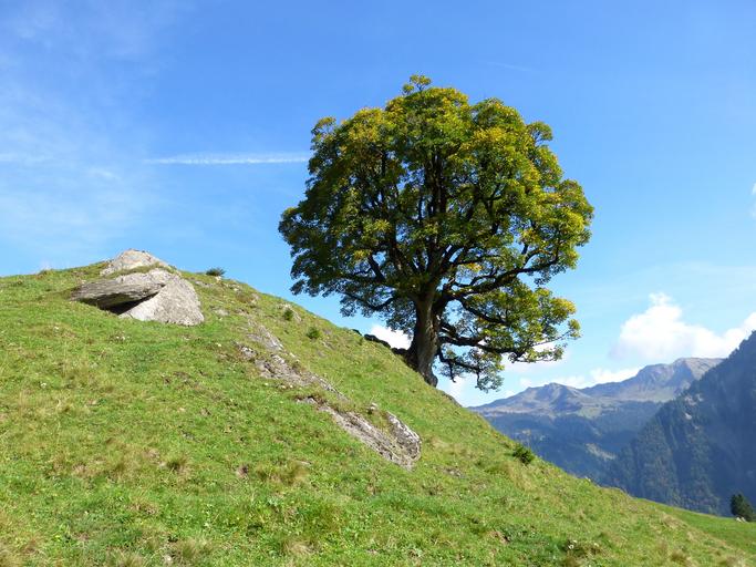 Keywords: tree hiking nature landscape mountains meadow late summer