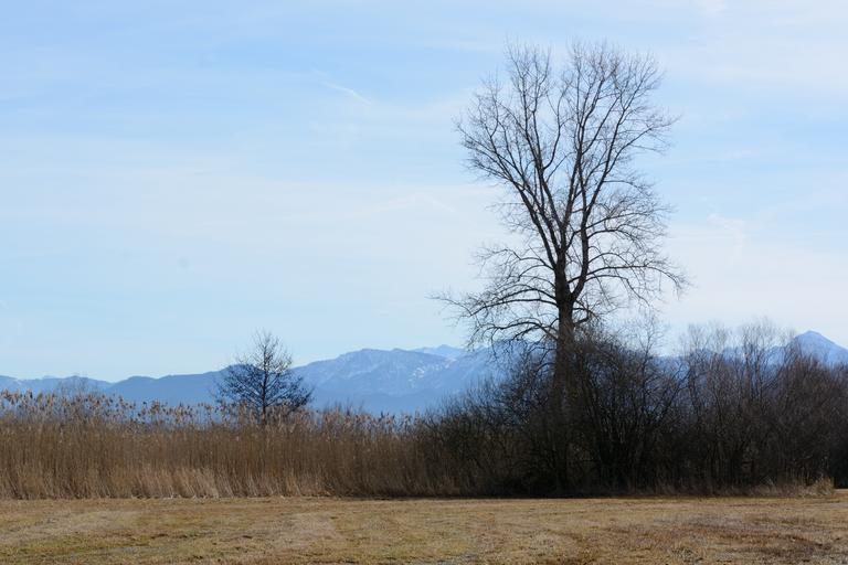 Keywords: tree individually bank reed mountains meadow nature landscape bavaria chiemsee
