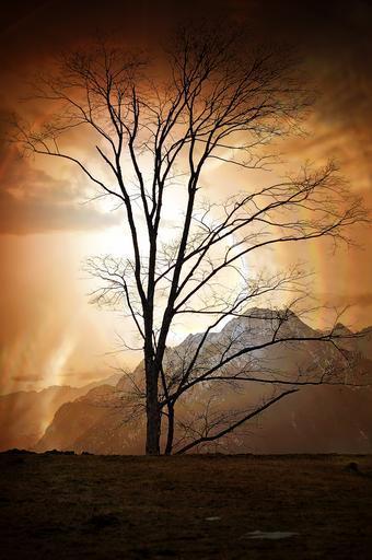 Keywords: tree landscape mountains mountain peaks outlook sunrise lighting back light morning rest silent