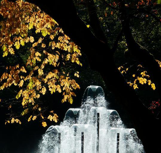 Keywords: tree leaves blue colorful green autumn nature red forest water fountain
