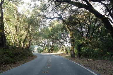 Tree lined street on road atop Santa Cruz Mountains.JPG (2457x1632)