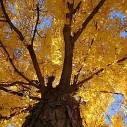 Keywords: tree look up ground golden leaves fall seasonal nature