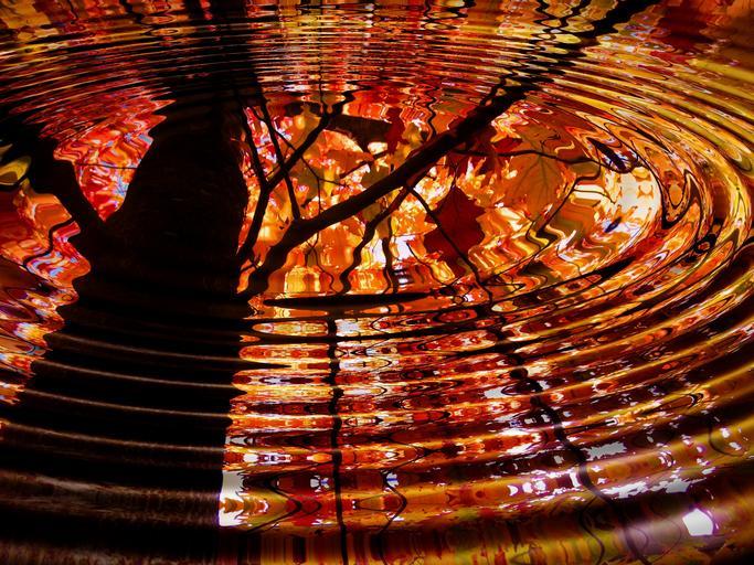 Keywords: tree mirroring mirror wave water leaf leaves brown colorful collage desktop earth tones color autumn autumn mood background image contrasts nature october orange red