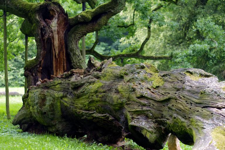 Keywords: tree overturned rotten old great oak forest nature konary forest path green