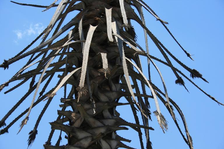 Keywords: tree palm trunk stubs stalks scales leaf remnants brown dry cycle sky
