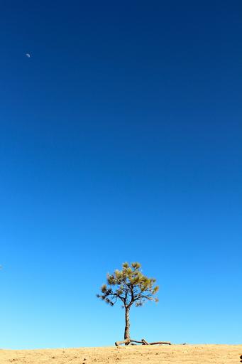 Keywords: tree plant pine conifer nature summer environment lonely sky blue moon crescent lunar azure color sand dry deserted landscape scene
