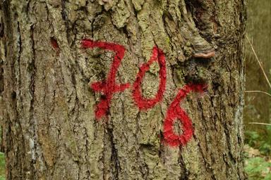 Keywords: tree tagged forest tribe log number 706 spray spray paint nature bark old tree lumberjack