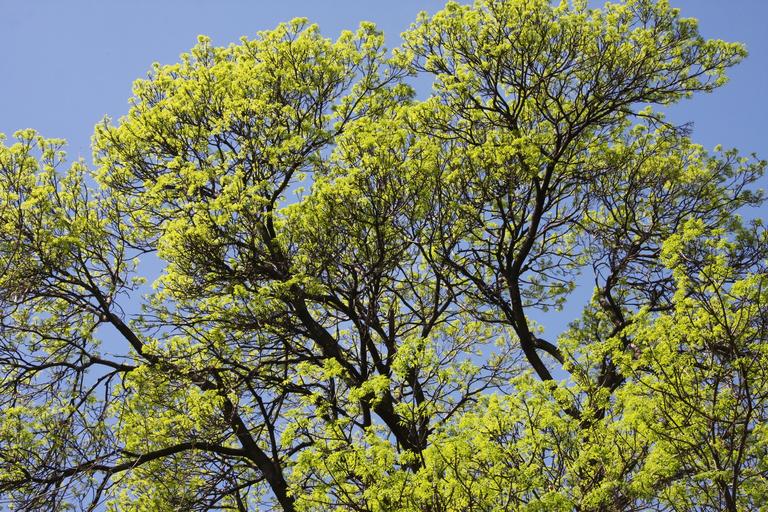 Keywords: tree tops oak tree forest leaves spring summer wood branch lush foliage plant green