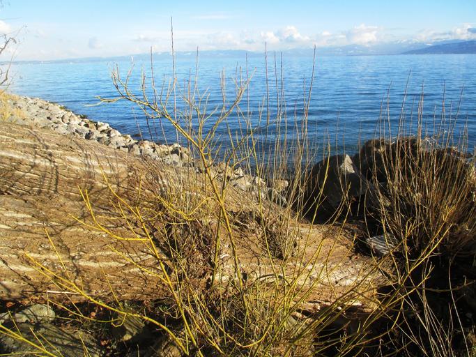 Keywords: tree tree trunk decay root dead tree lake perennials wood stones waser sky clouds nature lake constance romanshorn background