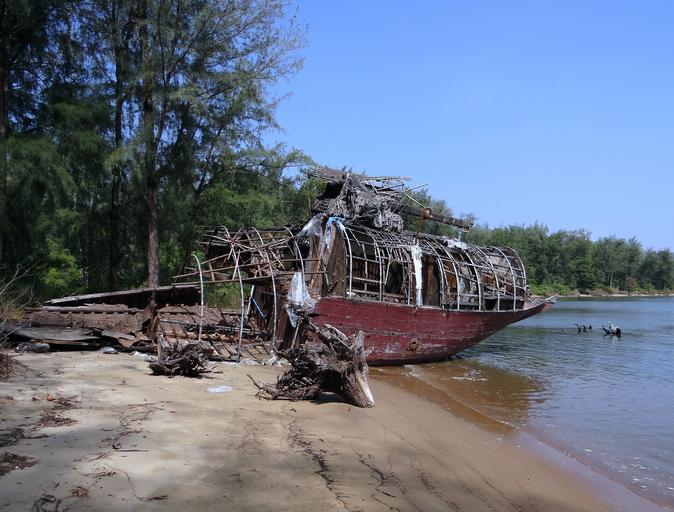 Keywords: tree trunk fallen forest house-boat wrecked karwar india