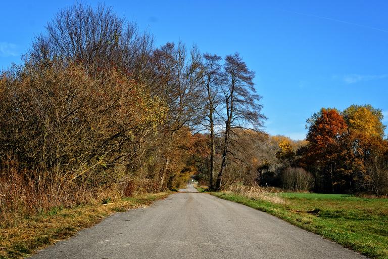 Keywords: trees autumn away road sky landscape mood autumn colours fall color meadow field green nature autumn mood romantic hiking walk holiday recovery leisure trail landscape way bavaria chiemgau atmosphere