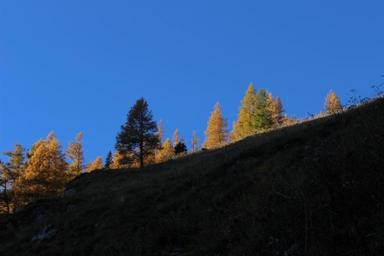 Keywords: trees autumn sky larches in the evening light autumn colours golden autumn