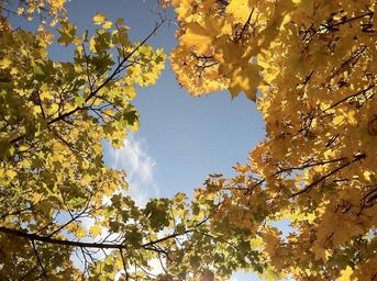 Keywords: trees forest clearing cloud sky blue day nature fall autumn season yellow