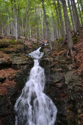 Keywords: trees forest stream water flowing tree stony nature stones summer shadow bank trough landscape tree roots creek bed