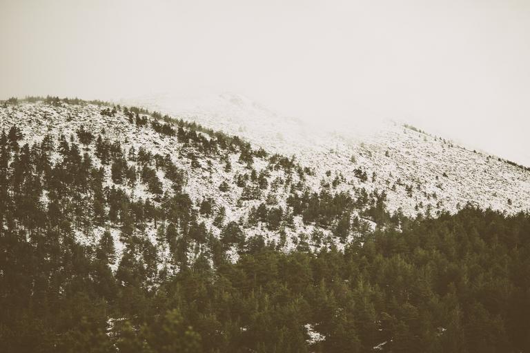 Keywords: trees hills snow fog nature