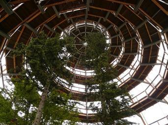 Keywords: treetop path web boardwalk construction observation tower platform spiral swirl upward tree trail nature trail forest trees treetop