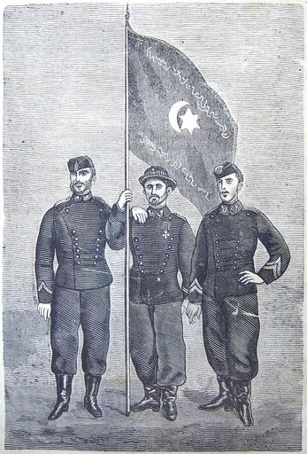 MAKE A MEME View Large Image Trei-Voinici-Resboiul-prima-pagina-18-septembrie-1877.jpg en Three Romanian soldiers of the 1877-1878 Romanian War of Independence with an Ottoman flag captured during the Siege of Plevna 20 July “ 10 December 1877 Print from the front page ...