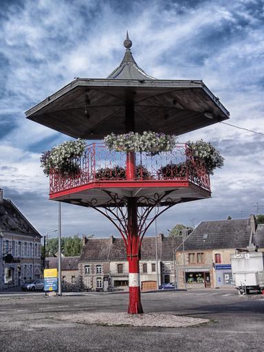 Keywords: trelon france village town buildings architecture flowers structure plaza outside sky clouds