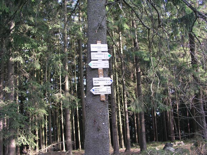 Keywords: Třemošná.JPG Rozcestník na vrcholu Třemošné Olympus C5050 2007 Petr Dudík Třemošná Brdy Hiking and footpath fingerposts in Příbram District