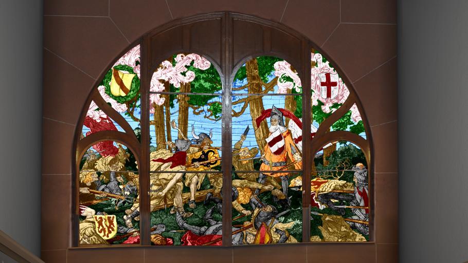 | Keywords: Treppenhaus des Friedrich-Gymnasiums Freiburg 2.png de Dreidimensionale Rekonstruktion und Rekolorierung des zerstörten Buntglasfensters Schlacht bei Sempach von Fritz Geiges im Treppenhaus des Friedrich-Gymnasiums Freiburg im Breisgau im Stadtteil Herdern 2013-02-20 own Leonard Wölfl 48 004364 7 859142 cc-by-sa-3 0 PD-old-70 Geiges-Fenster im Treppenhaus des Friedrich-Gymnasiums Herdern | ||||