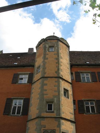 | Keywords: Treppenturm des Erasmusbaus des Obersontheimer Schlosses.jpg  Treppenturm des Erasmusbaus im Innenhof des Obersontheimer Schlosses 2009-07-11 own Brtlwr2 <span class signature-talk >talk</span> 49 03 25 41 N 09 53 45 1 E region DE_heading ESE Cc-zero Schloss Obersontheim |