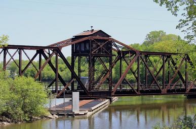 Keywords: trestle train swivel bridge railroad vintage fox river appleton wi river travel landscape transportation old railway summer