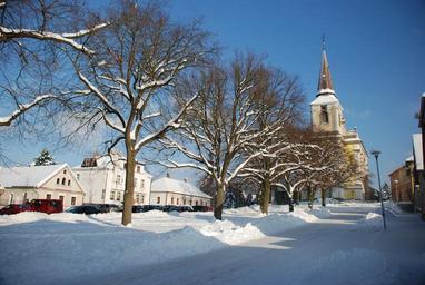 Keywords: Trhová Kamenice v zimě.jpg 13140/6-999 cs Trhová Kamenice v zimě Own Jan Němec winter 2010 Raisovo náměstí Church of Saint James and Philip Trhová Kamenice