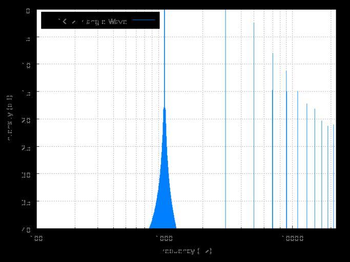 | Keywords: Triangle1000 spectrum.png en wikipedia 2009 November 28 Spectrum analysis of the uncompressed source for Triangle_wave_1000 ogg 5 seconds of triangle wave at 1000 Hz Note the logarithmic frequency scale The y-range of this graph may not be appropriate for comparison of similar waveforms; it is designed to match the frequency spectrum graphs for audio noises on en Colors of noise The analysis was done using en Audacity and plotting with en gnuplot Transparency was touched up in en GIMP to make the graph background pure white Instructions Obtain the frequency analysis from Audacity set the maximum number of windows and use a Hamming window The following script was used to generate the image n set terminal png transparent font /usr/share/fonts/truetype/ttf-bitstream-vera/Vera ttf size 800 600 enhancedset output triangle1000_spectrum png this seems to fix the trailers on the TTF font for the x-label set bmargin 4 enable grid set gridset grid mxtics set up x-axis set logscale x 10set xrange 100 22000set xlabel Frequency Hz set xtics border nomirror set up y-axis set yrange -40 0set ylabel Intensity dB set ytics border nomirror again to deal with bad bboxes on the TTF here also avoid the graph set key left height 1 box plot the output from Audacity plot triangle1000 txt title 1KHz Triangle Wave with filledcurves x1 3 original upload log page en wikipedia Triangle1000+spectrum png '1' Upload date User Bytes Dimensions Comment - nowrap 2006-03-14 01 53 10 nowrap Ktims nowrap 4352 nowrap 800×600 <small><nowiki>Spectrum analysis of the uncompressed source for Triangle_wave_1000 ogg 5 seconds of triangle wave at 1000 Hz Note the logarithmic frequency scale The analysis was done using Audacity and plotting with gnuplot Transparency was touch</nowiki></small> Audio spectrums |