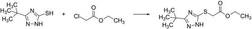 | Keywords: Triazamate synthesis (3).svg validSVG Reaction of 3- tert-butyl -1H-1 2 4-triazole-5-thiol and ethyl 2-chloroacetate to ethyl 2- 3- tert-butyl -1H-1 2 4-triazol-5-yl thio acetate Own 2014-05-02 Emeldir <span class signature-talk >talk</span> PD-chem Insecticide syntheses Condensation reactions |