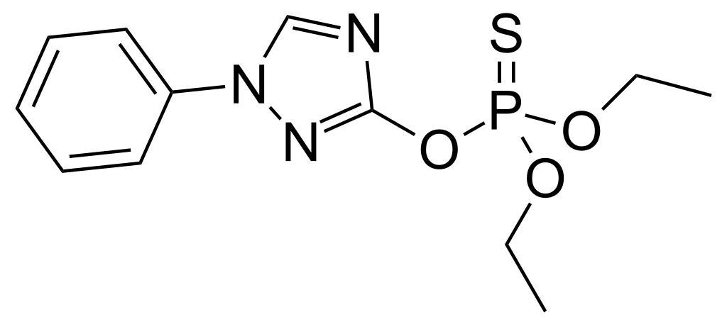 Keywords: Triazofos.svg Chemical structure of triazofos Own 19 37 11 October 2012 UTC Ed Edgar181 Organothiophosphate insecticides Triazoles Ethyl esters
