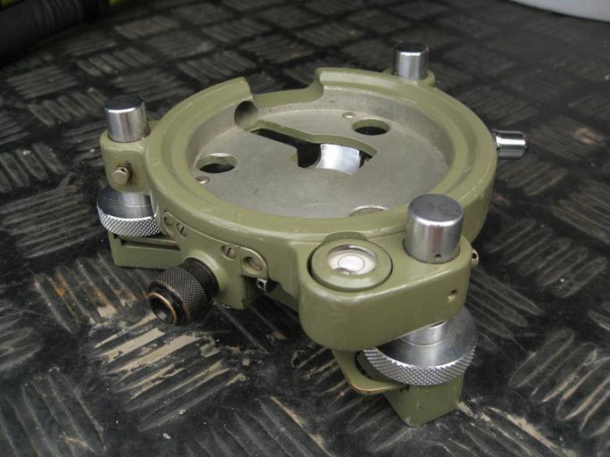 | Keywords: Tribrach for surveying instruments.JPG Tribrach with optical plummet for surveying instruments like for example total stations and more modern theodolites The eyepice for the optical plummet is the black cylinder pointing to the lower left corner of the image Trefot med optiskt lod för geodetiska instrument som till exempel totalstationer och modernare teodoliter Det optiska lodets okular är den svarta cylinder som pekar mot bildens nedre vänstra hörn Own 2009-08-21 Johan Gustafsson KJG2007 Surveying equipment Wild Heerbrugg |