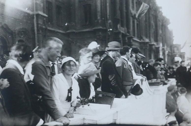 | Keywords: 20th century 20thcentury soviet union sovietunion boris souvarine borissouvarine communist international communistinternational activism russia third international thirdinternational iind congress iindcongress petrograd saint-petersburg saintpetersburg uritsky place uritskyplace 1920 komintern ouritsky place ouritskyplace palace square palacesquare delegates comintern july 1920 july1920 iiird international iiirdinternational Boris Souvarine Papers - Soviet Russia Photos graduateinstitute.ch/home/research/library/archives/boris...  Notes: The back of this picture holds the mention (in Russian) "IInd Congress of the IIIrd International. The tribune on Uritsky Square". One recognizes the Winter Palace colonnade in the background.  The people photographed may be delegates to the Congress of the IIIrd International. The lady in a white dress seems to be the same as in the photo entitled "Group of the delegates of the IIIrd International, Petrograd".   French syndicalist Alfred Rosmer (1877-1964) was one of the French delegates to the Communist International. He wrote about this event: "L’après-midi [17 juillet 1920] un meeting eut lieu sur la vaste place du Palais d’Hiver, si riche en souvenirs. (....) Une tribune était dressée devant le Palais d’où l’on dominait la foule venue pour écouter les orateurs. (...) La scène, c’était le péristyle qu’on atteignait par un haut escalier. La foule immense accourue pour voir le spectacle tenait à l’aise sur la vaste place. Dans ce cadre exceptionnel se déroulèrent une suite de scènes évoquant “ la marche du socialisme à travers les luttes et les défaites vers la victoire”.  Unknown photographer.  Description: 1 photograph. Black and white ; 11 x 16.5 cm.  Sources and further reading:  Rosmer, Alfred. 1920. Moscou sous Lénine. Extract available online, "XIII: Smolny - Séance solennelle d'ouverture du IIe Congrès":  www.marxists.org/francais/rosmer/works/msl/msl2013.htm   Related resources: www.wikiart.org/en/boris-kustodiev/festivities-marking-th...   Boris Souvarine Papers - Soviet Russia Photos graduateinstitute.ch/home/research/library/archives/boris...  Notes: The back of this picture holds the mention (in Russian) "IInd Congress of the IIIrd International. The tribune on Uritsky Square". One recognizes the Winter Palace colonnade in the background.  The people photographed may be delegates to the Congress of the IIIrd International. The lady in a white dress seems to be the same as in the photo entitled "Group of the delegates of the IIIrd International, Petrograd".   French syndicalist Alfred Rosmer (1877-1964) was one of the French delegates to the Communist International. He wrote about this event: "L’après-midi [17 juillet 1920] un meeting eut lieu sur la vaste place du Palais d’Hiver, si riche en souvenirs. (....) Une tribune était dressée devant le Palais d’où l’on dominait la foule venue pour écouter les orateurs. (...) La scène, c’était le péristyle qu’on atteignait par un haut escalier. La foule immense accourue pour voir le spectacle tenait à l’aise sur la vaste place. Dans ce cadre exceptionnel se déroulèrent une suite de scènes évoquant “ la marche du socialisme à travers les luttes et les défaites vers la victoire”.  Unknown photographer.  Description: 1 photograph. Black and white ; 11 x 16.5 cm.  Sources and further reading:  Rosmer, Alfred. 1920. Moscou sous Lénine. Extract available online, "XIII: Smolny - Séance solennelle d'ouverture du IIe Congrès":  www.marxists.org/francais/rosmer/works/msl/msl2013.htm   Related resources: www.wikiart.org/en/boris-kustodiev/festivities-marking-th...    |