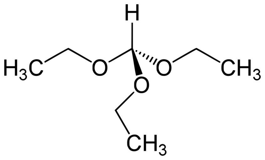 Keywords: Triethoxymethane.svg en Triethoxymethane; Aethon; Ethone; Triethyl orthoformate; Orthoformic acid triethyl ester de Triethylorthoformiat; Orthoameisensäuretriethylester; Triethoxymethan own Yikrazuul 2010-10-08 Orthoesters Ethyl esters