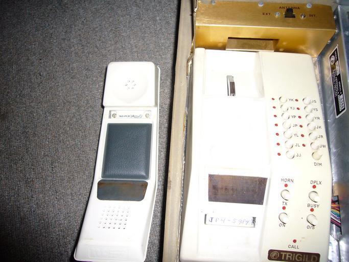 Keywords: Trigild Gemini 2 handset.jpg Trigild Gemini 2 model DM1-TP13 an MTS briefcase phone Serial number 5308 Shown here is the telephone handset and cradle with no apparent dialing mechanism possibly a Northern Telecom RD 1967 telephone modified to add mobile telephone function buttons and a button for each MTS channel At top a switch to select an external or internal antenna original caption ITMS mobile briefcase phone Own filename Phone4 JPG Techie111 2008-07-02 Nortel Telephone parts Trigild mobile phones |