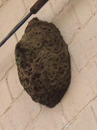 | Keywords: Trigona-spinipes-nest-unicamp-03.png en Nest of stingless bees Trigona spinipes on the wall of a building at the State University of Campinas Brazil The nest is a couple of months old; it is built of dirt and other debris The greenish part possibly including cow or horse dung is the most recent addition A couple of bees are visible as bright specks The cinder blocks are about 40 cm wide and 19 cm tall excluding the mortar The wall is painted tan-beige; the white smudges below the nest are places where the paint peeled off showing the older white paint layer Picture taken by J Stolfi with a Sony DSC-V1 camera with some post-processing own Jorge Stolfi 2008 04 17 at 14 07 09 local time File Trigona-spinipes-nest-unicamp-01 png Trigona spinipes |