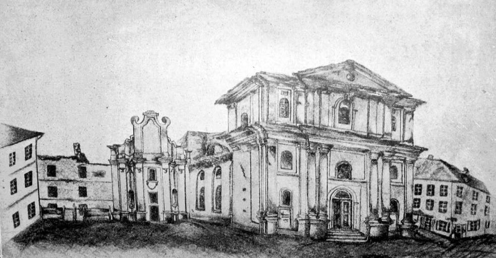 | Keywords: Trinitarian church, Lviv (2).jpg  uk Руїни т иніта ського монасти я у Львові Sobczyńska M Koścół p w Przenajświętszej Trójcy i klastor trynitarzy «intra moenia» we Lwowie  dzieje i architektura // Sztuka kresów wschodnich  T 6  S 52 1850 author PD-old Trinitarian monastery Lviv |